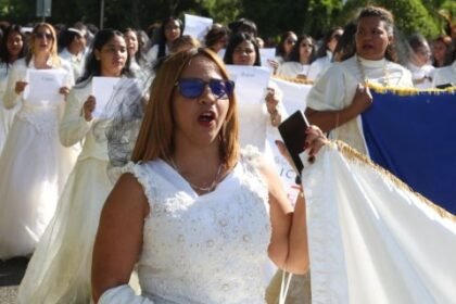 Colectivos de mujeres y organizaciones sociales realizaron la Marcha de las Novias para reclamar políticas efectivas contra la violencia de género y recordar a las víctimas. Con vestimenta blanca y ve...