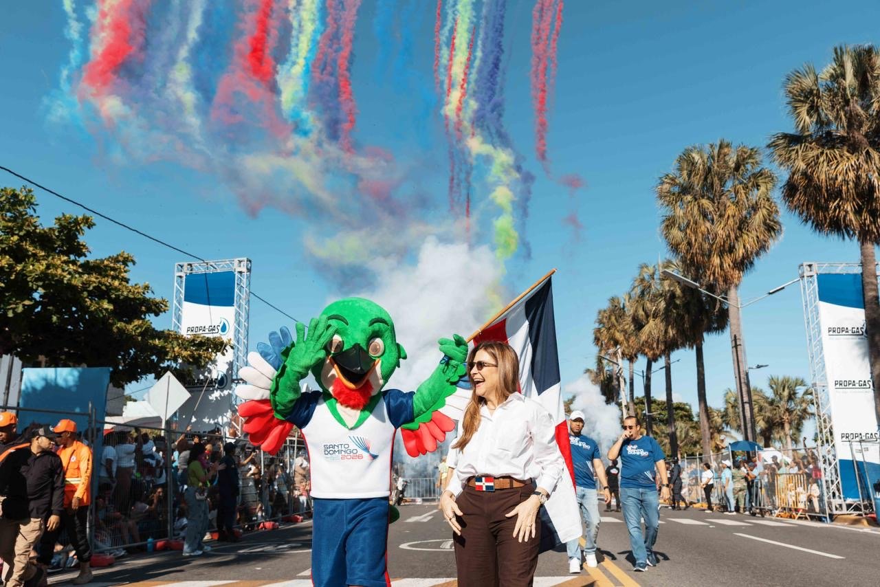 La alcaldesa Carolina Mejía dio inicio al Carnaval del Distrito Nacional 2026 acompañada por la mascota oficial de los Juegos Centroamericanos y del Caribe Santo Domingo.