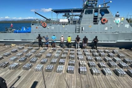 La DNCD informó que ocupó 2,049 paquetes (más de dos toneladas) de presunta cocaína tras una operación de interdicción marítima frente a las costas de Baní, Peravia, con apoyo internacional y desplieg...