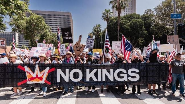 En muchas ciudades, la protesta mezcló discursos con un tono cívico y simbólico: carteles, banderas, consignas por la “democracia” y rechazo a la idea de un poder sin límites, de ahí el nombre “No Kings”.